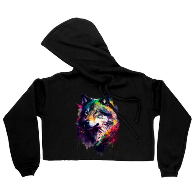 Colorful Wolf Women’s Cropped Hoodie – Cool Art Cropped Hoodie – Printed Hooded Sweatshirt