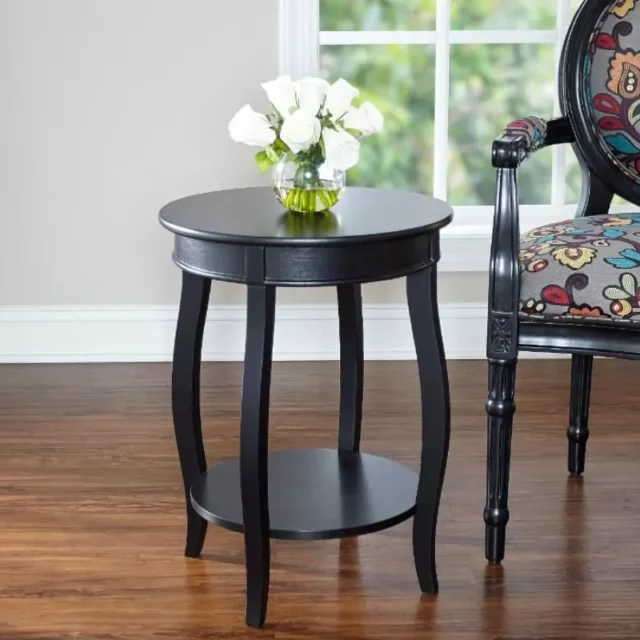 Featuring a contemporary round shape with a nod to classic aesthetics, the table stands out with its sleek black finish and graceful cabriole tapered legs. The thoughtful design includes a round lower shelf, offering you the perfect spot to store essentials like gaming controls, books, or decorative items. It’s not just a table; it’s a solution to your everyday living needs.