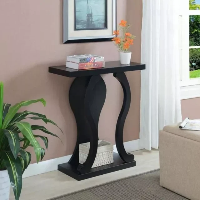Elevate the ambiance of your home with our Elegant Faux Black Console Table. This chic piece infuses a touch of modern sophistication into any room. Whether gracing your entryway, living room, hallway, or dining room, this console table is the epitome of versatile elegance. Its sleek design complements a variety of interior themes, from contemporary to classic, making it a timeless addition to your home.