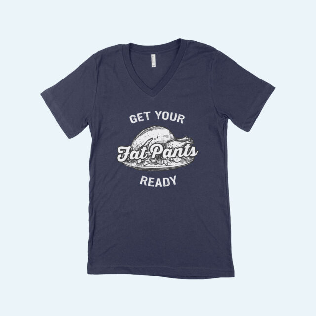 Looking for a relaxed and comfortable t-shirt? Look no further than Get Your Fat Pants Ready Unisex Jersey V-Neck T-Shirt. Made from soft and lightweight fabric, Get Your Fat Pants Ready Unisex Jersey V-Neck T-Shirt is perfect for everyday wear. And with a stylish v-neck design, it’s sure to turn heads too!