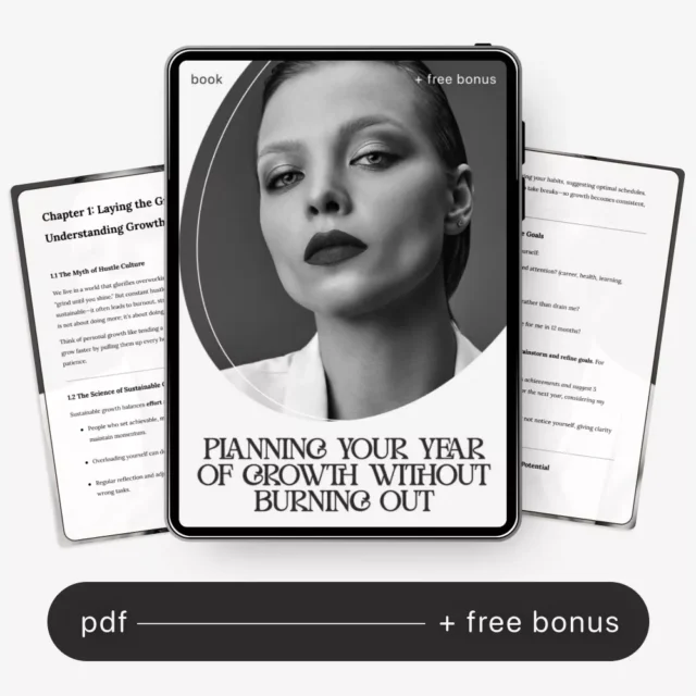 Growth should never come at the cost of your wellbeing. Planning Your Year of Growth Without Burning Out is a practical, calming, and empowering ebook designed to help you design a full year of progress without overwhelm. Whether you’re building a business, advancing your career, or working on personal development, this guide shows you how to plan a year of growth without burnout with ai in a way that feels intentional, realistic, and sustainable. You won’t just create goals – you’ll create a system that supports your energy, mindset, and long-term success.