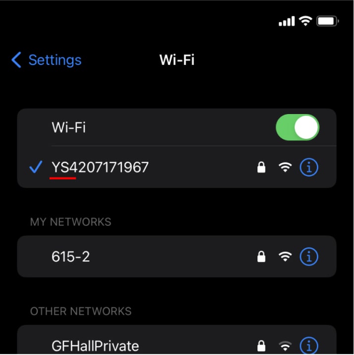 Download the “LED Space” app. Open Wi-Fi Settings on your phone. Find the network that starts with YS and connect to it (password: 12345678)
