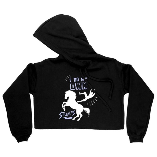 Women’s Cropped Fleece I Do My Own Stunts Hoodie – Horse Hoodies with Sayings – Funny Quotes About Horse Riding