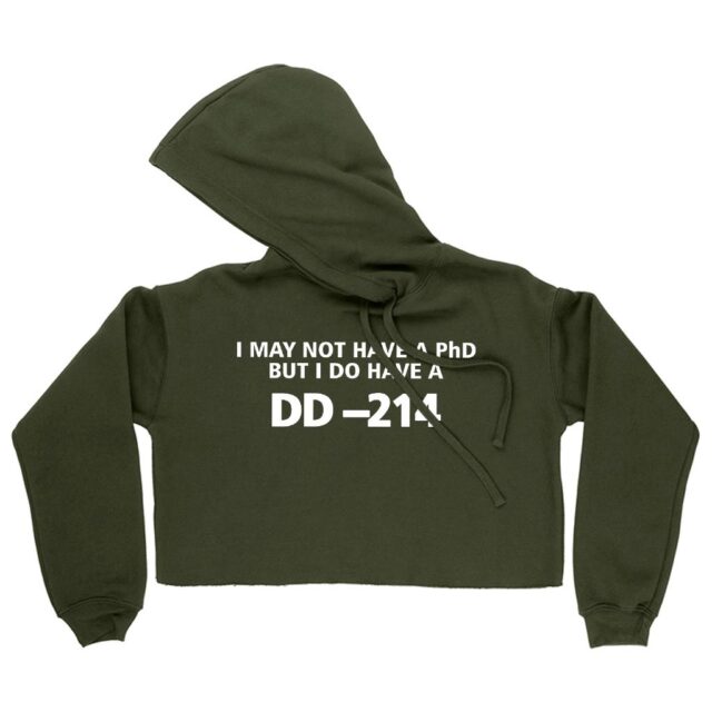 Women’s Cropped Fleece I May Not Have PhD Hoodie – Funny Military Hoodies – Funny Army Hoodies
